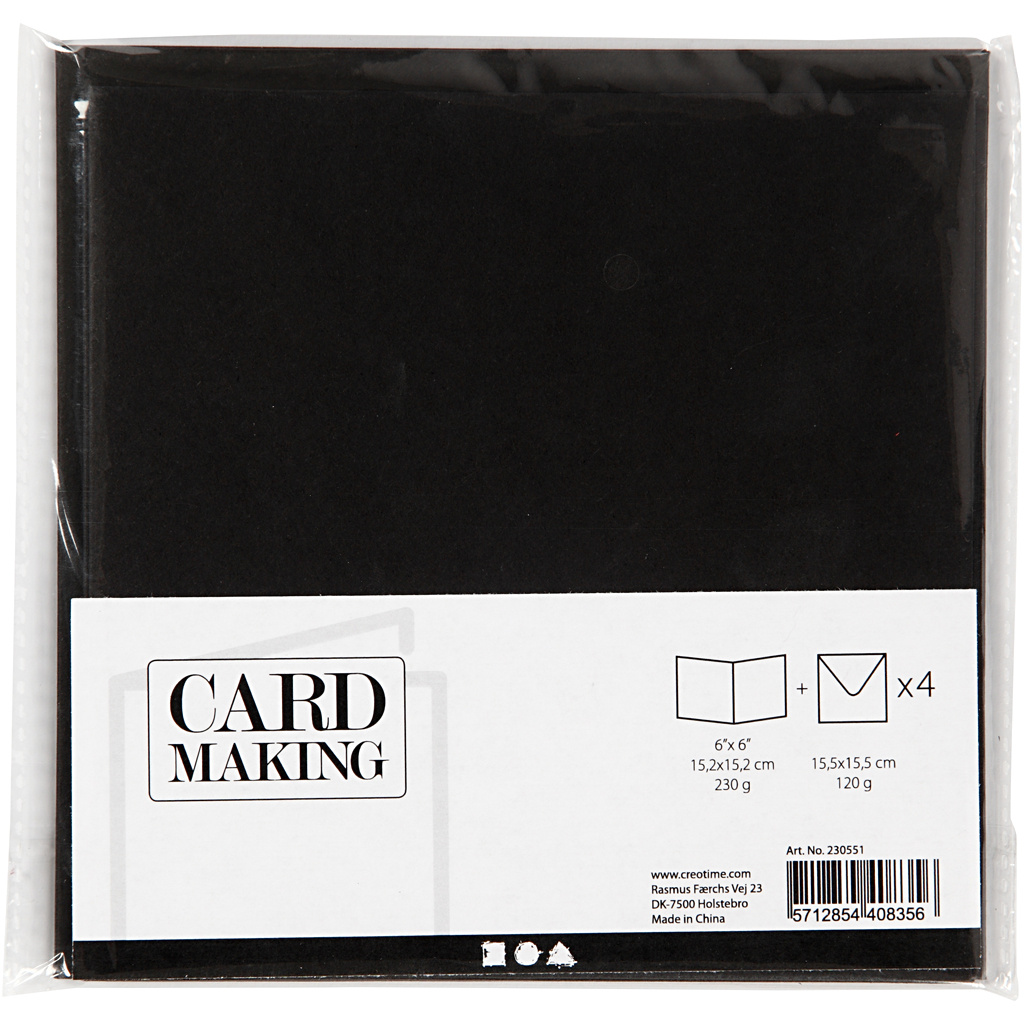 Creativ Company Kaarten en enveloppen, afmeting kaart 15,2x15,2 cm, afmeting envelop 16x16 cm, 230 gr, zwart, 4 set/ 1 doos