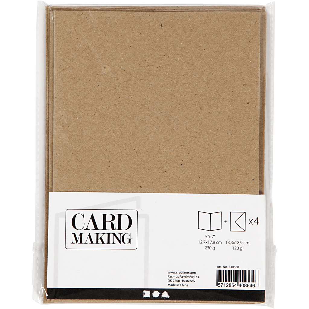 Creativ Company Kaarten en enveloppen, afmeting kaart 12,7x17,8 cm, afmeting envelop 13,3x18,5 cm, 230 gr, naturel, 4 set/ 1 doos