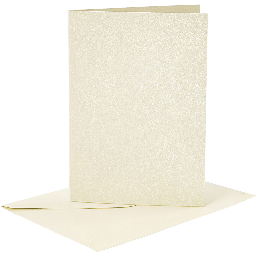 Creativ Company Kaarten en enveloppen, afmeting kaart 10,5x15 cm, afmeting envelop 11,5x16,5 cm, parelmoer, 120+210 gr, off-white, 4 set/ 1 doos