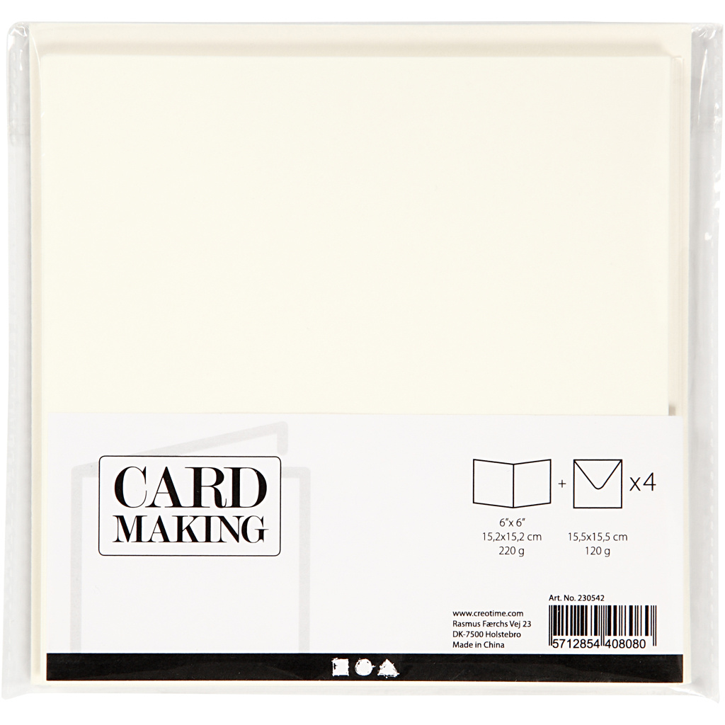 Creativ Company Kaarten en enveloppen, afmeting kaart 15,2x15,2 cm, afmeting envelop 16x16 cm, 220 gr, off-white, 4 set/ 1 doos