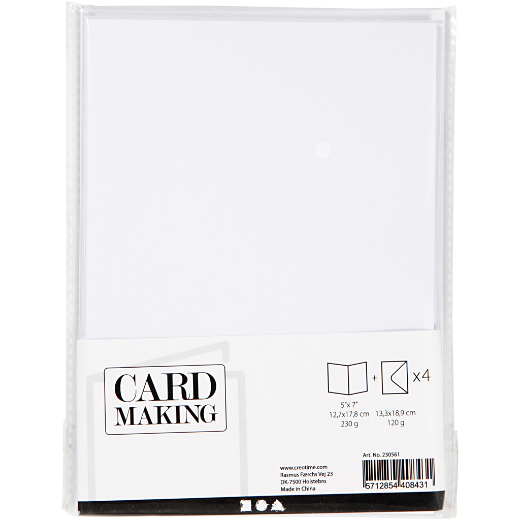 Creativ Company Kaarten en enveloppen, afmeting kaart 12,7x17,8 cm, afmeting envelop 13,3x18,5 cm, 230 gr, wit, 4 set/ 1 doos