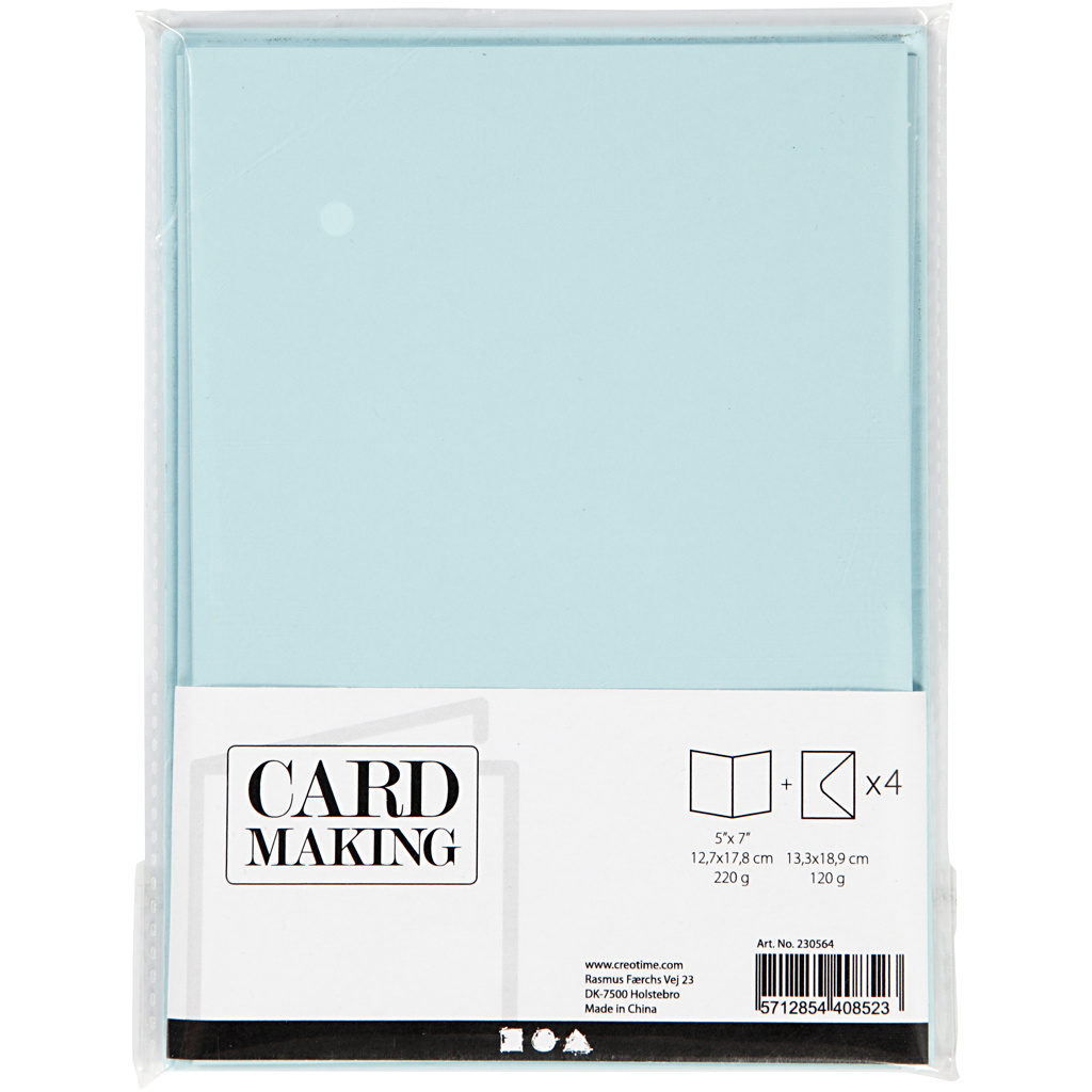 Creativ Company Kaarten en enveloppen, afmeting kaart 12,7x17,8 cm, afmeting envelop 13,3x18,5 cm, 220 gr, lichtblauw, 4 set/ 1 doos