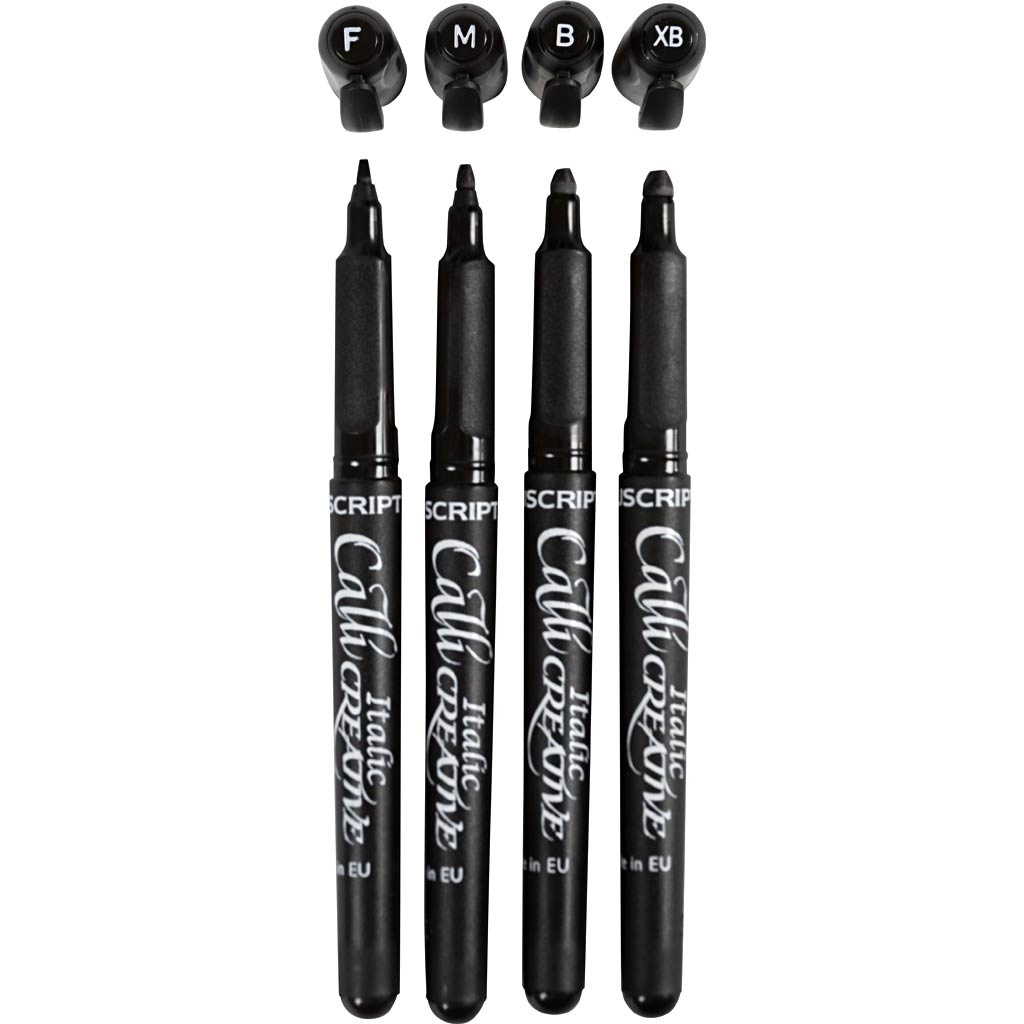Kalligrafeer Stiften, lijndikte 1,4+2,5+3,6+4,8 mm, zwart, 4 stuk/ 1 doos