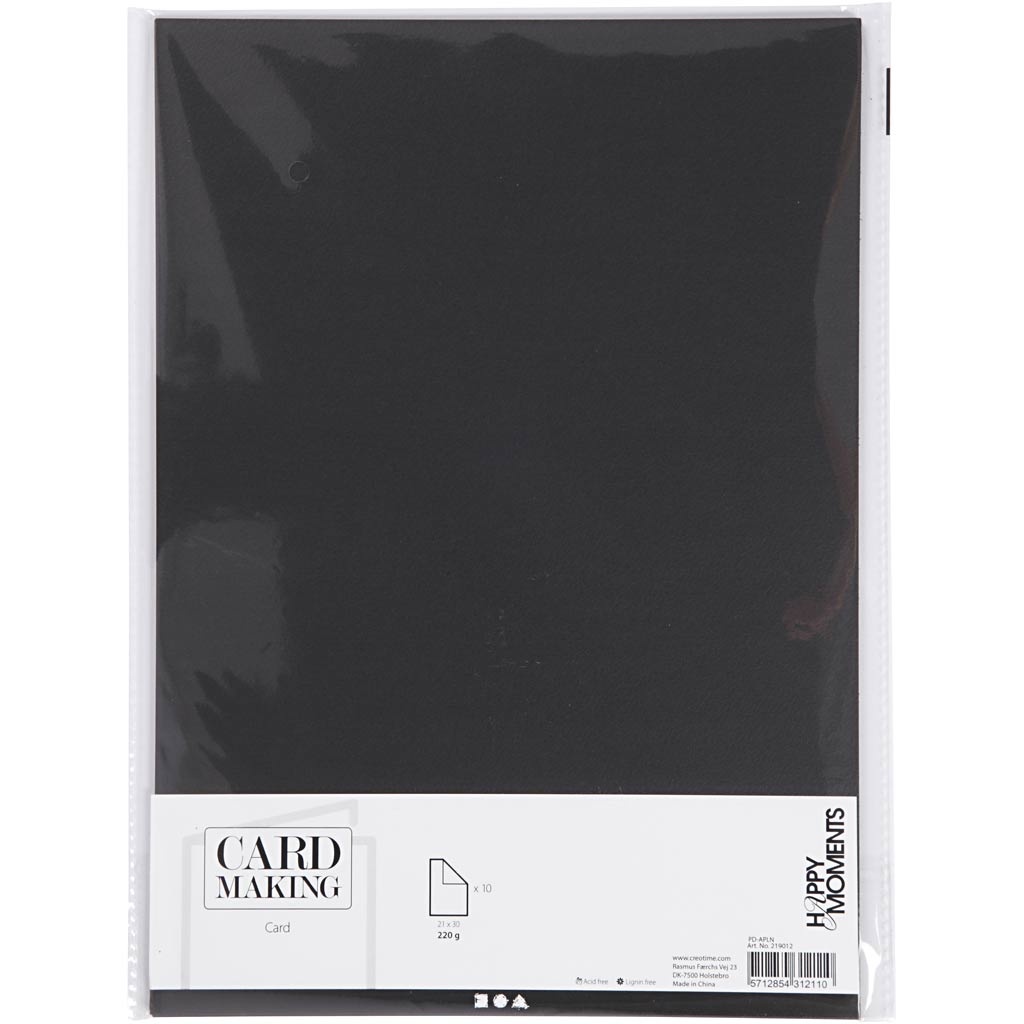 Creativ Company Karton, A4, vel 210x297 mm, 220 gr, zwart, 10 stuk/ 1 doos
