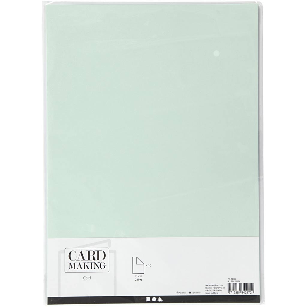Creativ Company Karton, A4, vel 210x297 mm, 210 gr, pastel groen, 10 vel/ 1 doos