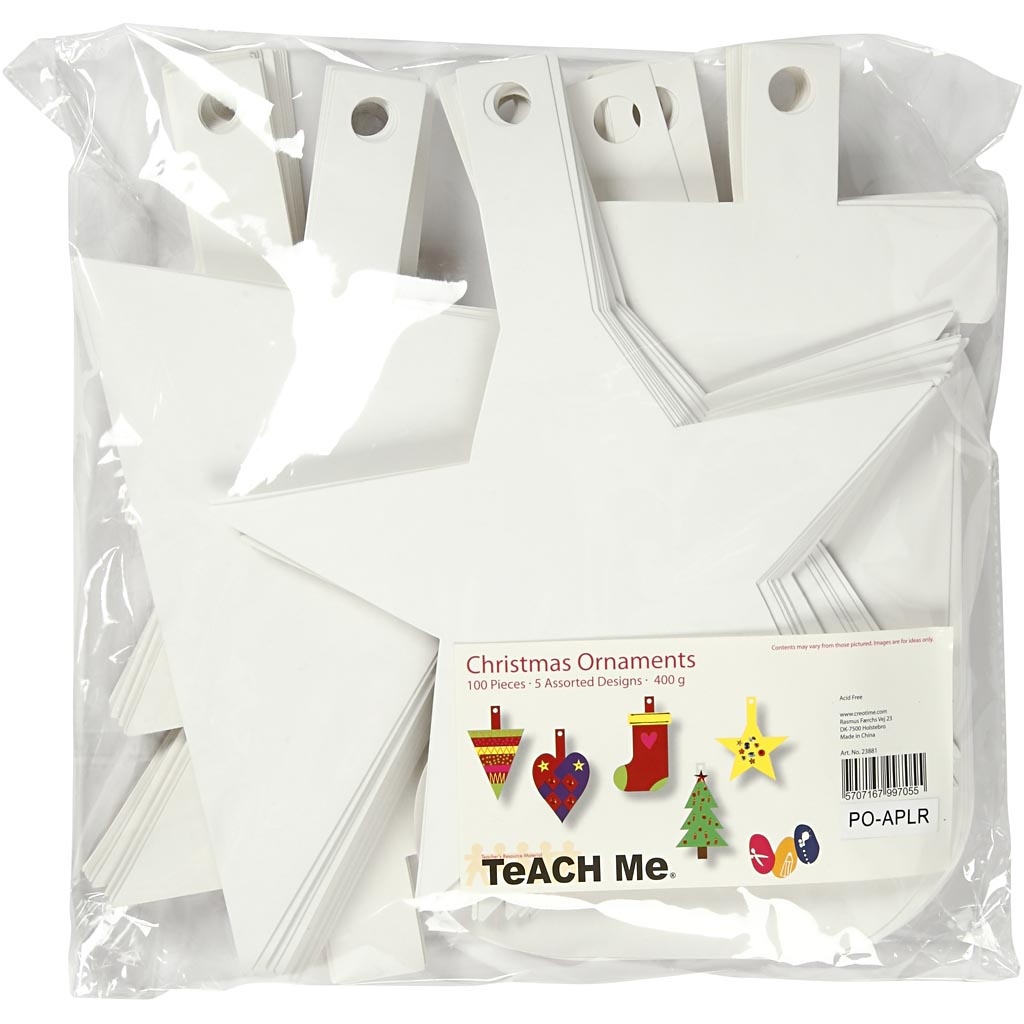 Creativ Company Kerst ornamenten, H: 23,5-26,5 cm, B: 15,5-20,5 cm, wit, 100 stuk/ 1 doos