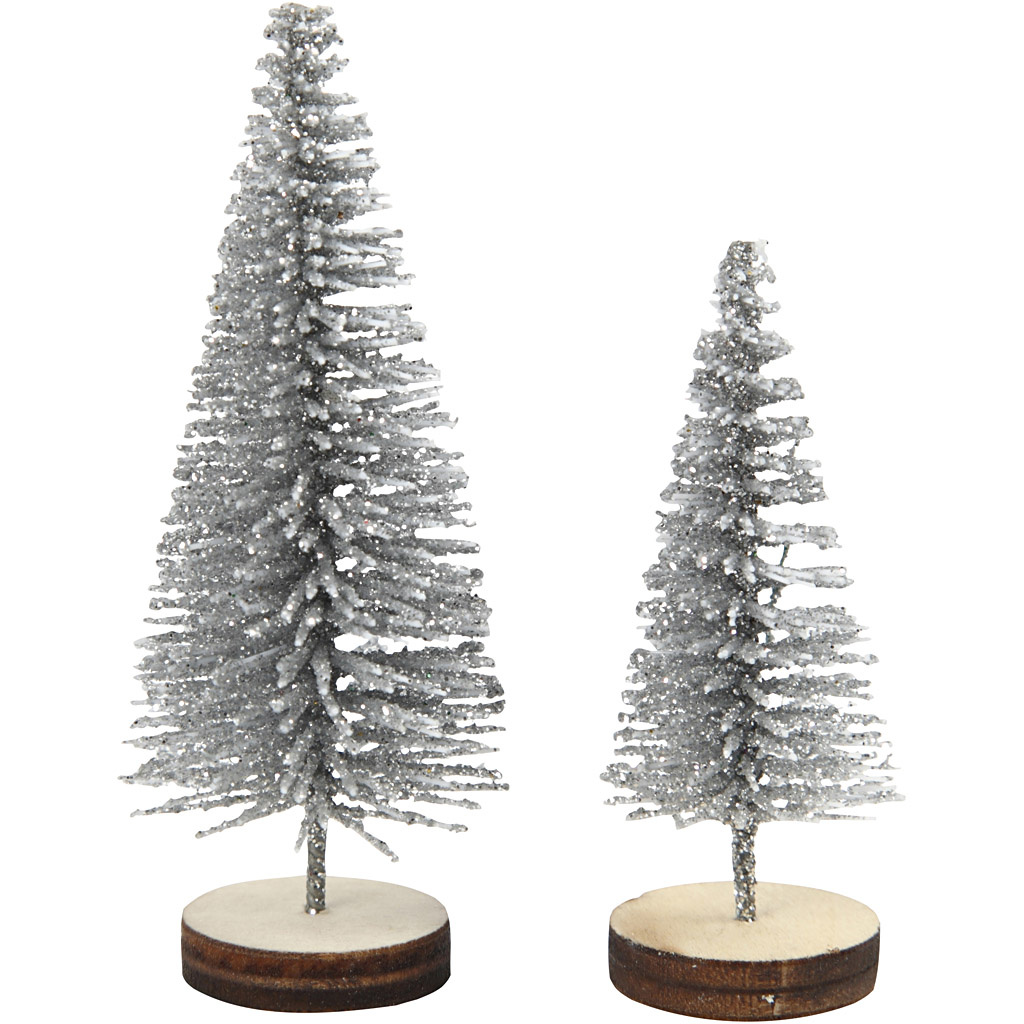Creativ Company Kerstbomen, H: 40+60 mm, zilver, 5 stuk/ 1 doos