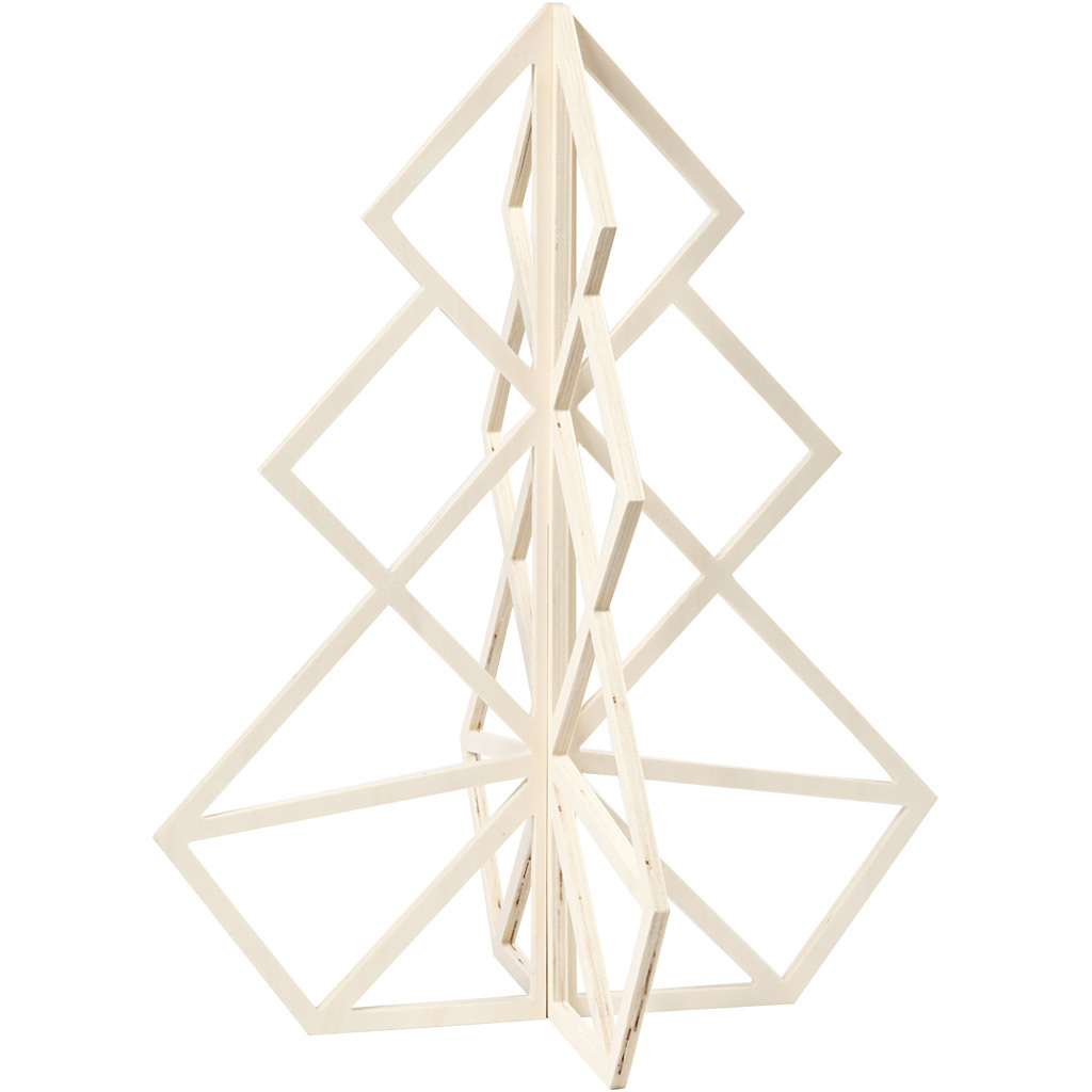 Kerstboom in geometrisch design van licht, 3 mm dik hout, bestaande uit de delen met sleuf