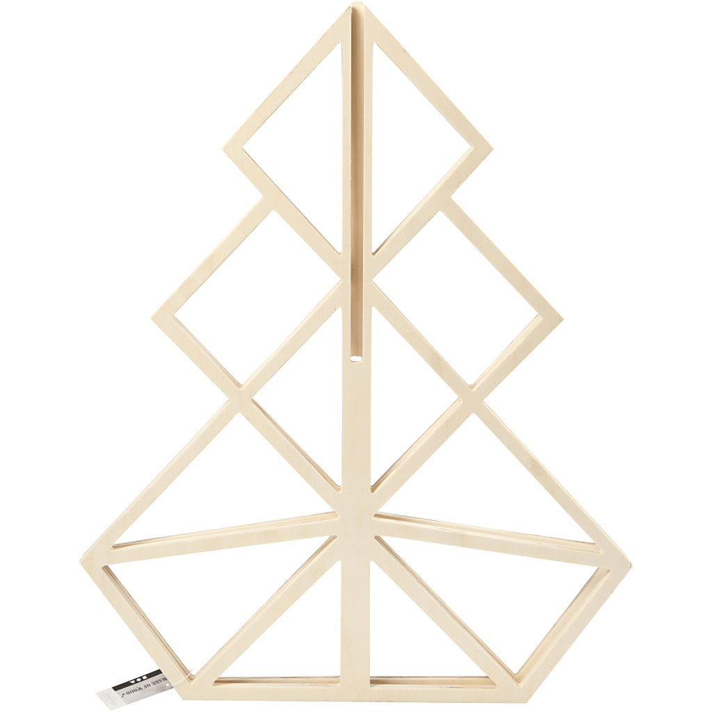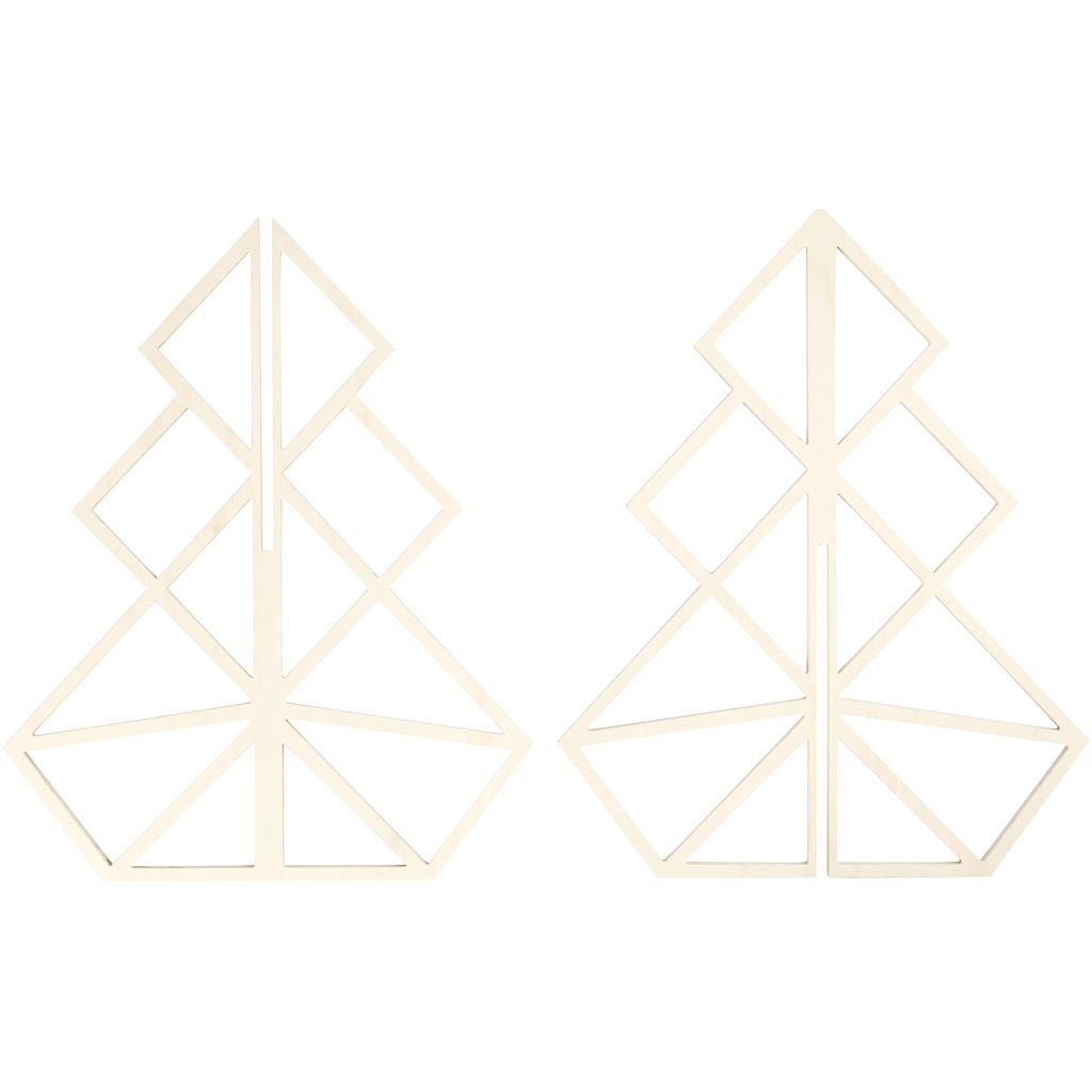 Kerstboom in geometrisch design van licht, 3 mm dik hout, bestaande uit de delen met sleuf Lees meer