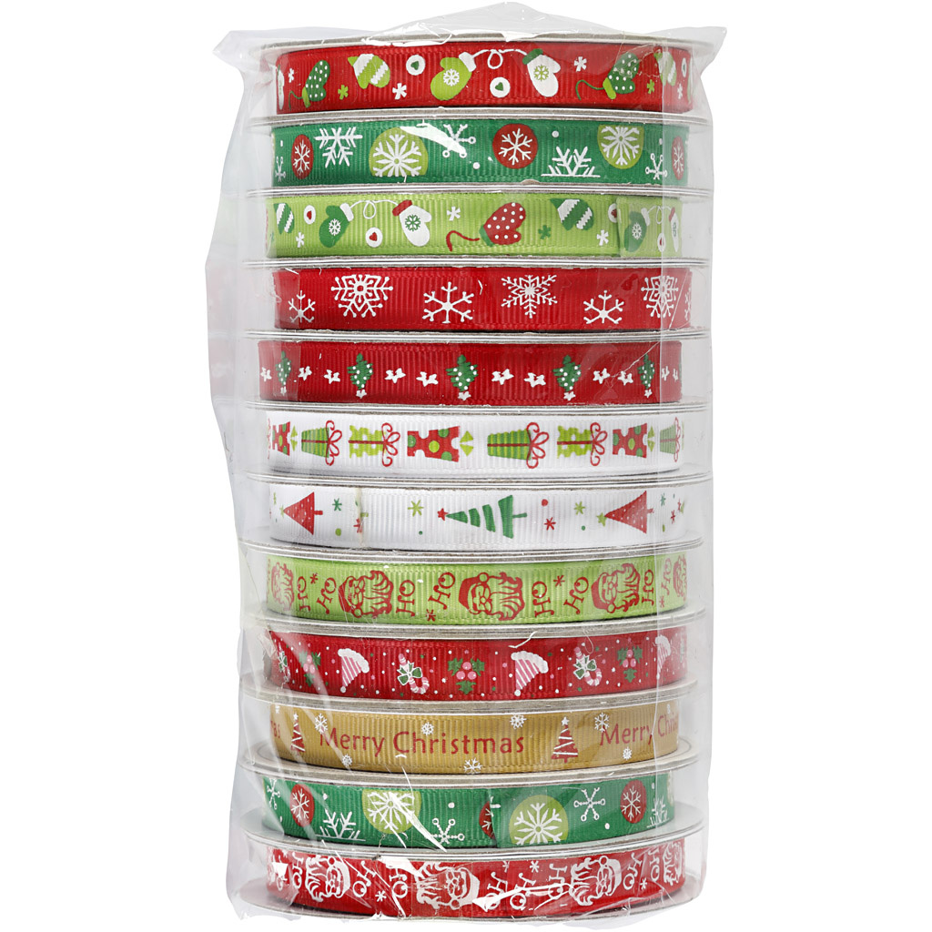 Dit veelzijdige kerstlint is gemaakt van sterk en soepel polyester, wat het ideaal maakt voor verschillende decoratieve doeleinden tijdens de feestdagen. Met een breedte van 10 mm biedt het lint voldoende stevigheid zonder aan flexibiliteit in te boeten. De set bestaat uit twaalf rollen van elk drie meter, netjes verpakt in één doos.