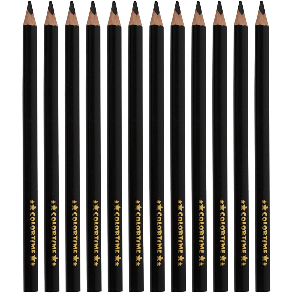 De Colortime Kleurpotloden JUMBO zijn ideaal voor intensief gebruik op school, op kantoor of thuis bij creatieve projecten. Deze set bestaat uit twaalf stevige zwarte potloden in een handige doos, waarbij elk potlood een lengte heeft van 17,45 cm en een extra dikke vulling van 5 mm. De potloden liggen prettig in de hand dankzij het grotere formaat, wat ze bijzonder geschikt maakt voor zowel kinderen als volwassenen die houden van tekenen en schetsen met een diepzwarte kleur.