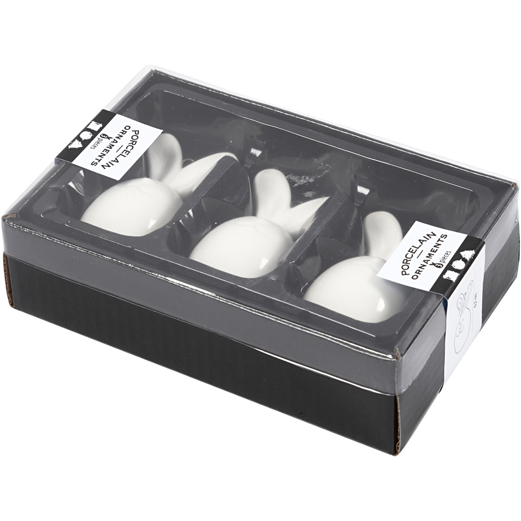 Creativ Company Konijn, H: 6,7 cm, d 3,6 cm, wit, 3 stuk/ 1 doos
