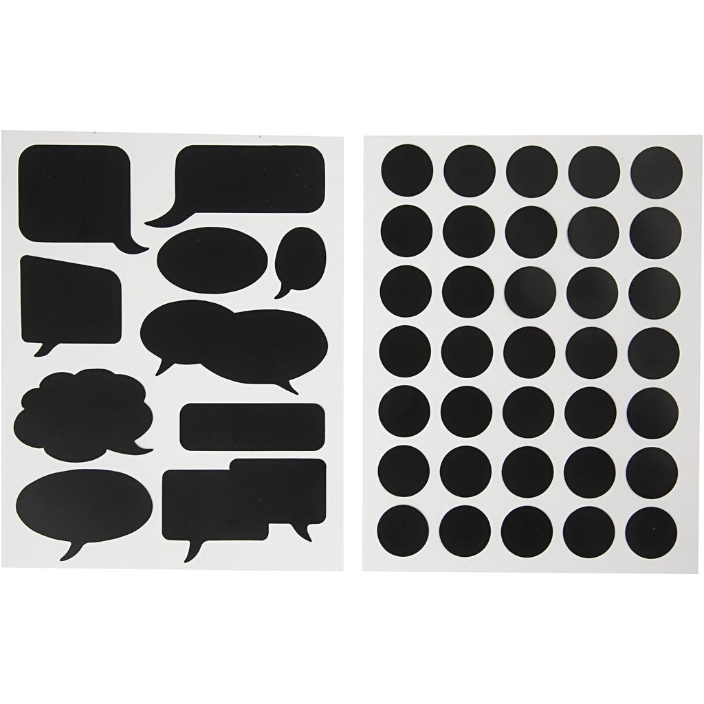 Creativ Company Krijtbord stickers, cirkels en spreekballonnen, vel 14x18 cm, zwart, 2 div vellen/ 1 doos