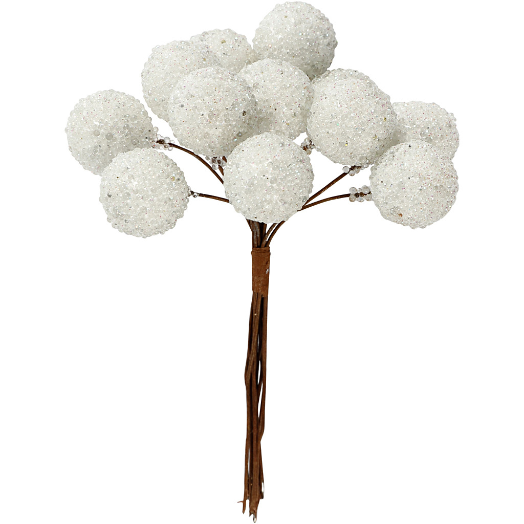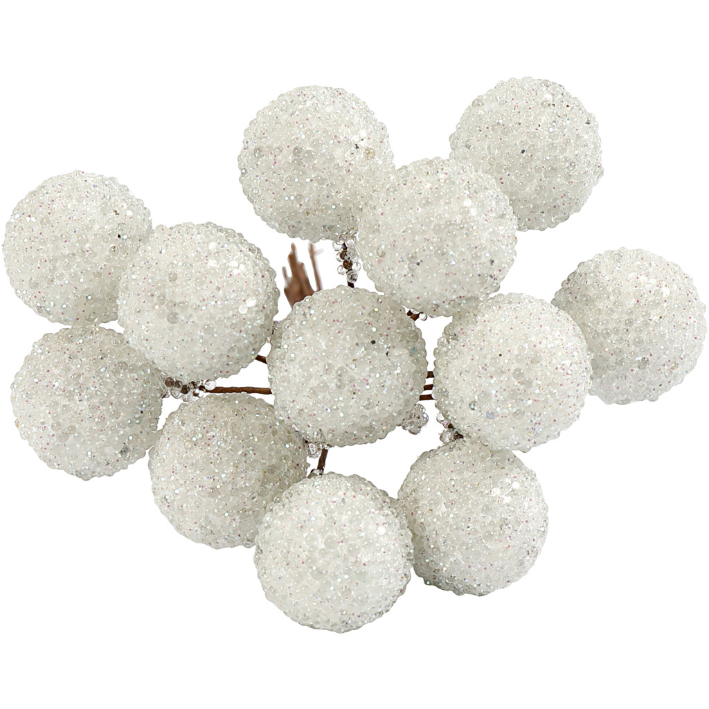 Creativ Company Kunst bessen, d 15 mm, wit, 12 stuk/ 1 doos