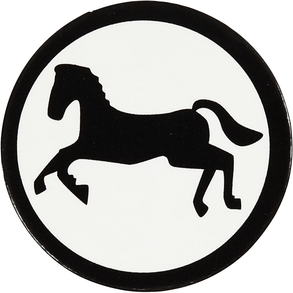 Creativ Company Label, paard, d 25 mm, wit/zwart, 20 stuk/ 1 doos