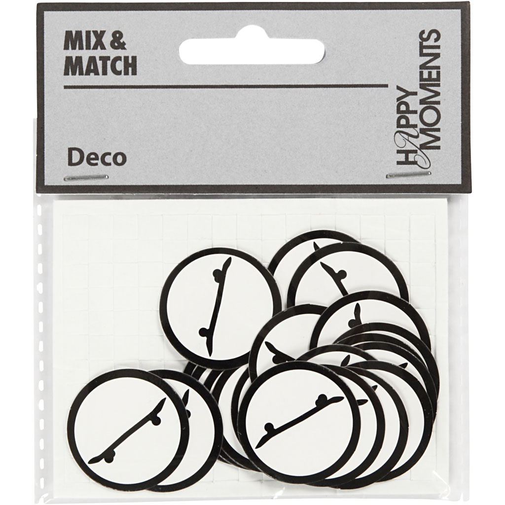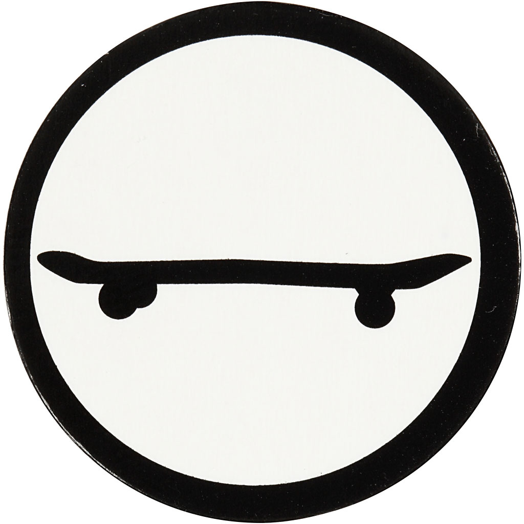 Creativ Company Label, skateboard, d 25 mm, wit/zwart, 20 stuk/ 1 doos