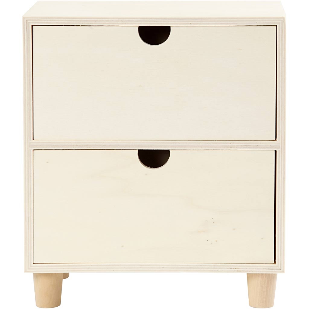 Kleine ladenkast van licht hout met 2 lades Lees meer