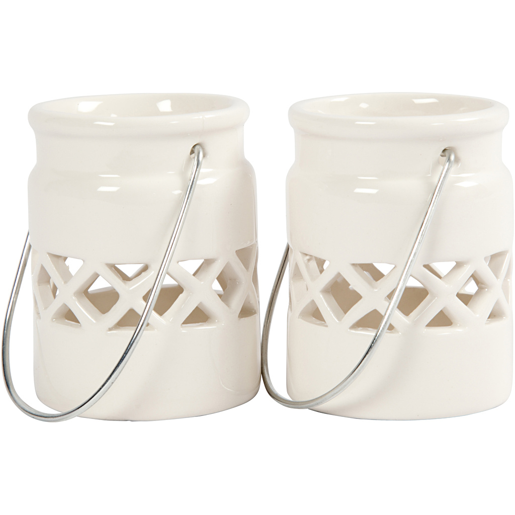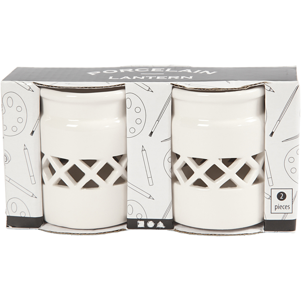 Creativ Company Lantaarn, H: 8 cm, d 6,2 cm, wit, 2 stuk/ 1 doos