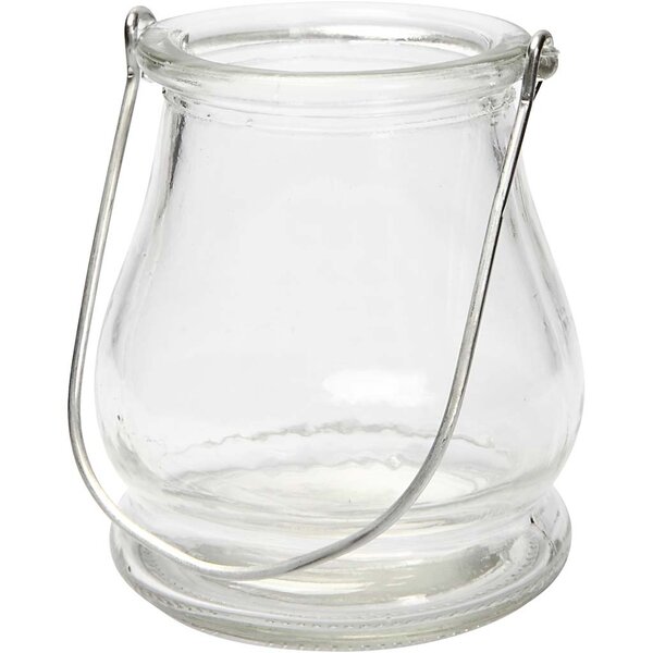 Bolvormige lantaarn van transparant glas met metalen hanger. Niet geschikt voor de oven Lees meer