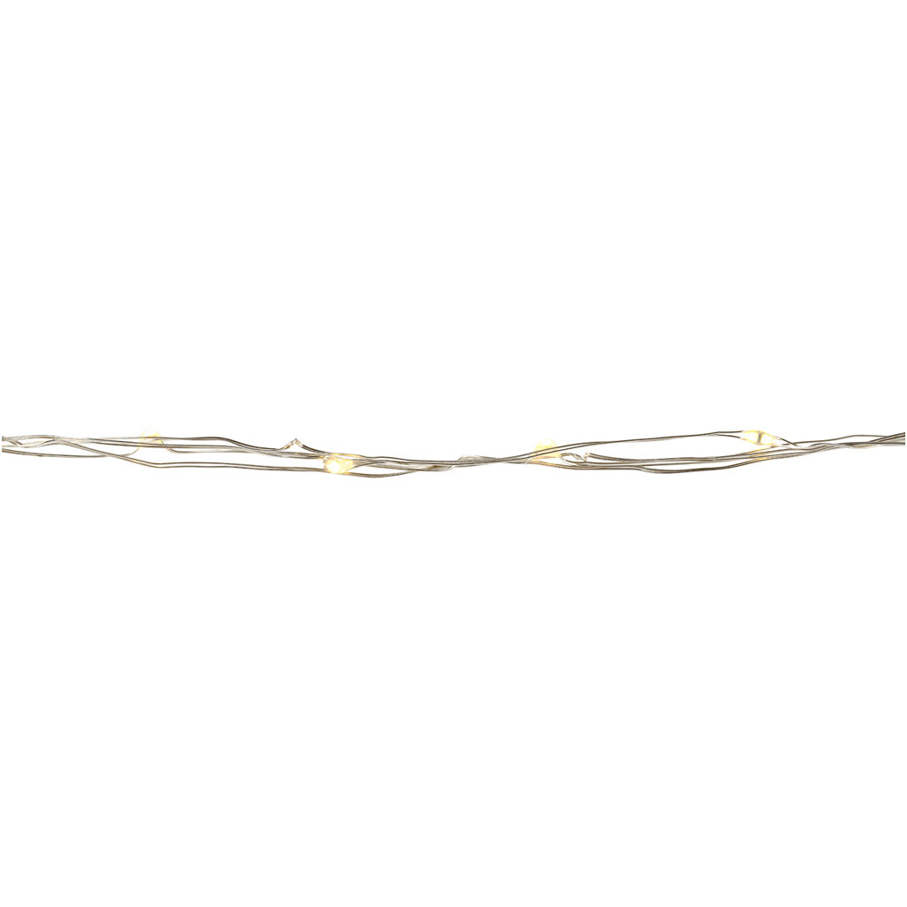 Slinger met 20 kleine LED lampjes op batterijen. Dubbele draad met koperdraad met kleine diodes ertussen gelijmd. 2x AA batterijen benodigd, bijvoorbeeld artikelnr. 14000 (niet inclusief). Alleen voor gebruik binnenshuis