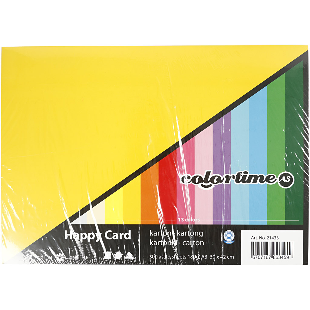 Colortime Lentekarton, A3, vel 297x420 mm, 180 gr, diverse kleuren, 300 div vellen/ 1 doos