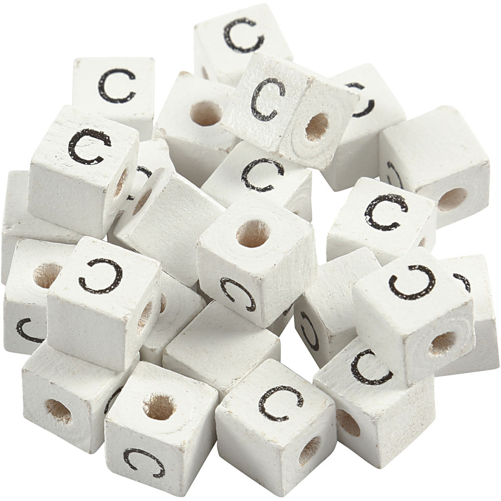 Creativ Company Letterkralen, C, afm 8x8 mm, gatgrootte 3 mm, wit, 25 stuk/ 1 doos