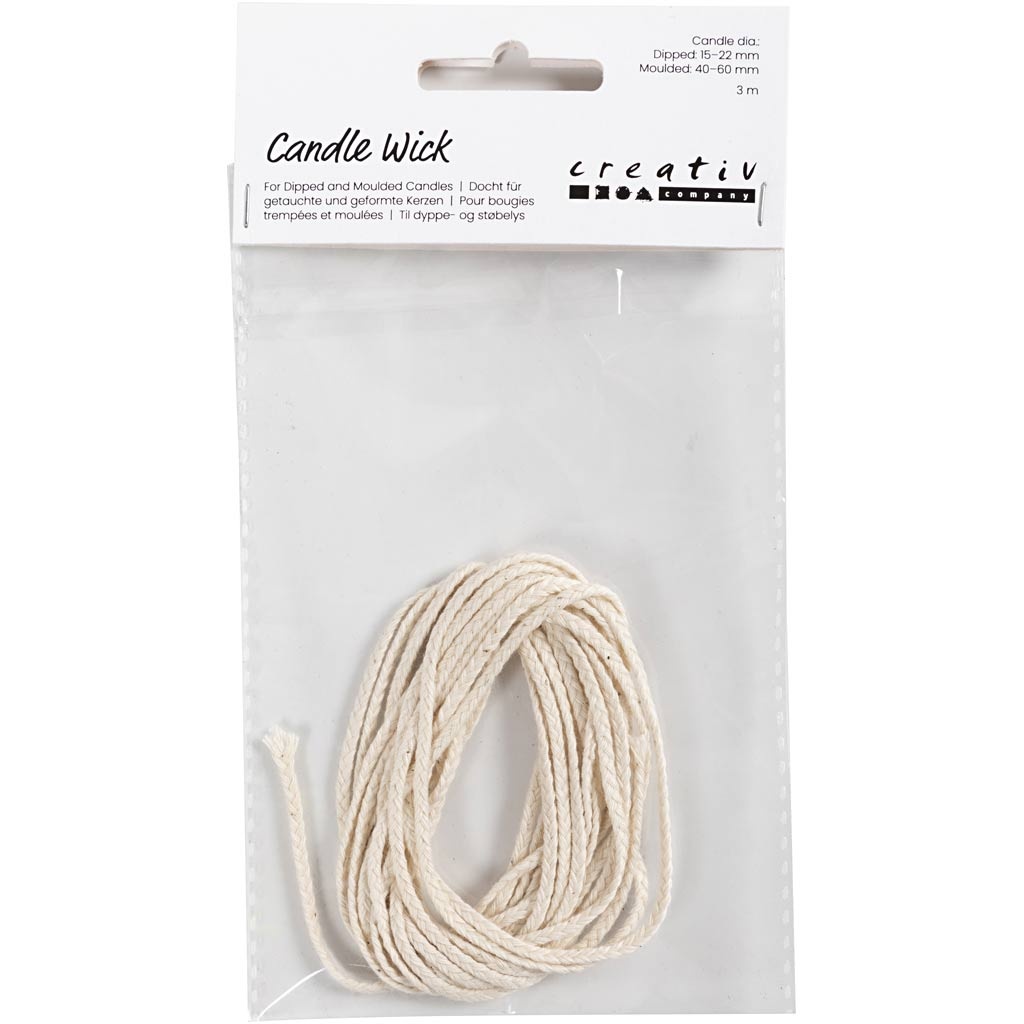 Lont, Geschikt voor dompelkaarsen (dia. 15-22 mm) en gegoten kaarsen (dia. 40-60 mm), 100 gr, 3 m/ 1 doos