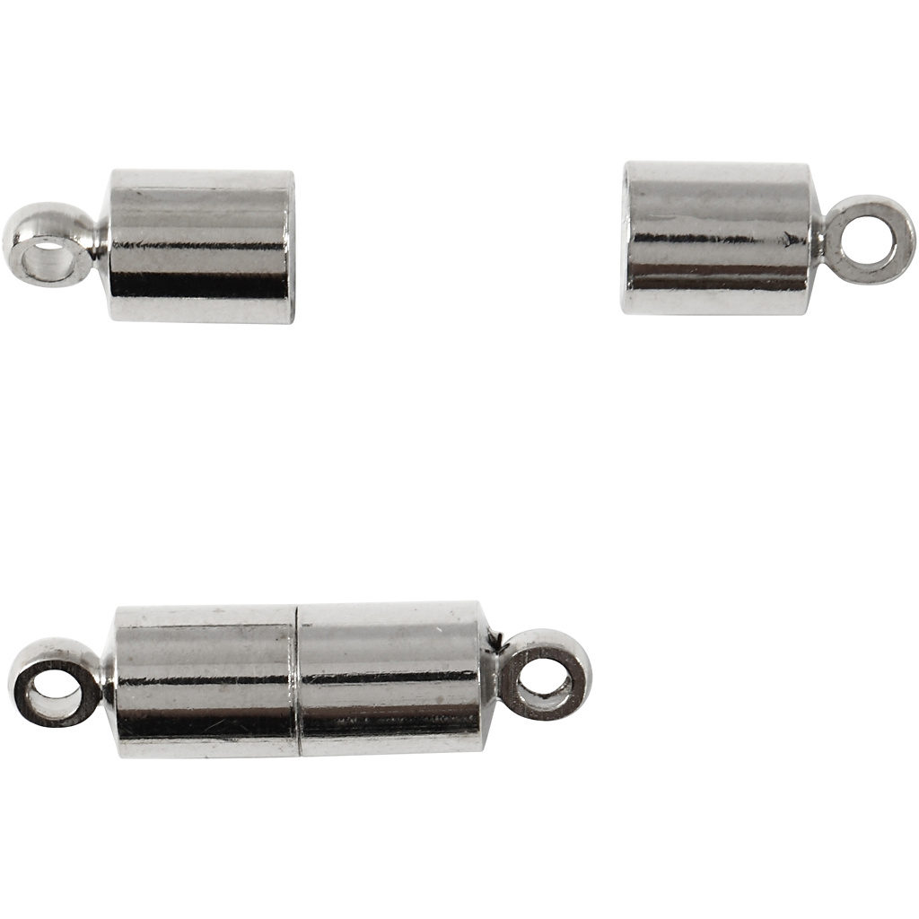 Magneetsluiting met ogen, L: 15 mm, d 5 mm, verzilverd, 10 stuk/ 1 doos