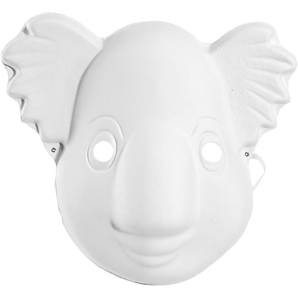 Set voorgevormde maskers van wit papierpulp. Breed elastiek is aan het masker bevestigd