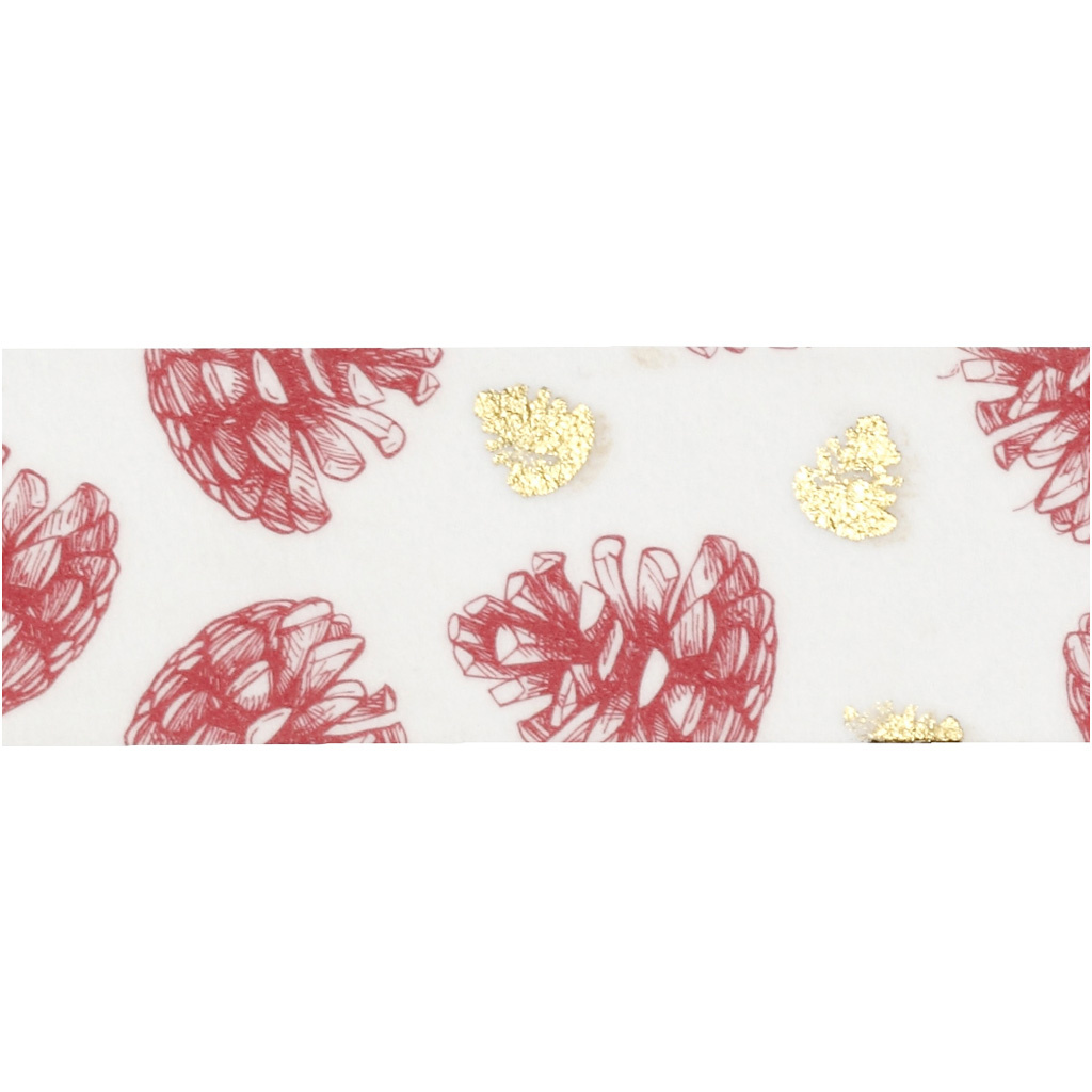 De Masking Tape van het merk Vivi Gade is een veelzijdige papieren tape met een feestelijk ontwerp van denneappels en stippen in foliedetail. Deze set bevat twee rollen van elk vier meter lang, verpakt in één doosje, met een breedte van 15 mm. Dankzij het stevige papiermateriaal is de tape zowel decoratief als eenvoudig te verwerken op papier en verschillende oppervlakken.