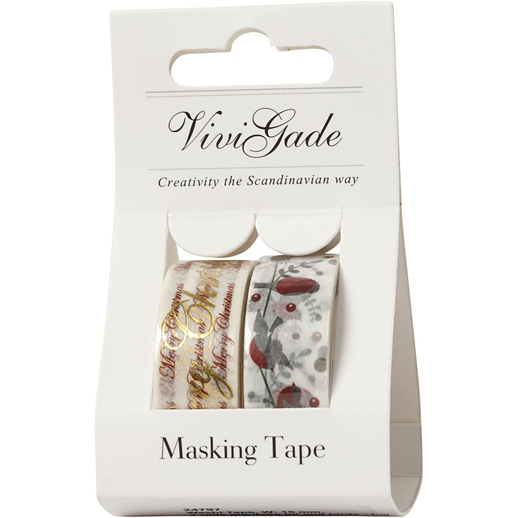 Masking Tape, Merry Christmas en vogels - folie, B: 15 mm, 2x4 m/ 1 doos