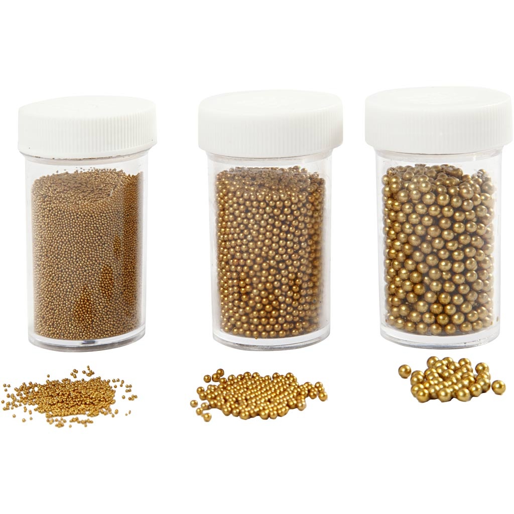 Creativ Company Mini Stenen van Glas, afm 0,6-0,8+1,5-2+3 mm, goud, 3x45 gr/ 1 doos