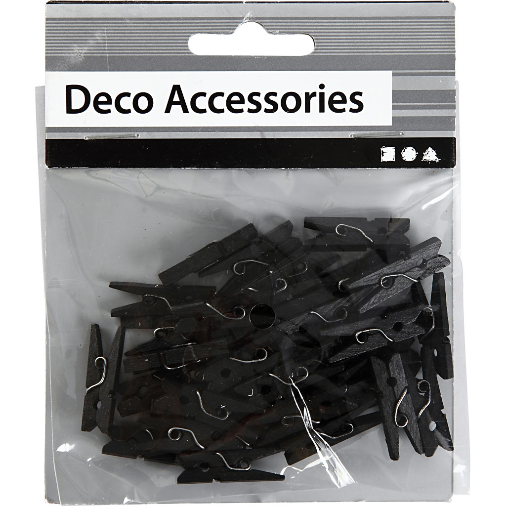 Creativ Company Mini wasknijpers, L: 25 mm, B: 3 mm, zwart, 36 stuk/ 1 doos