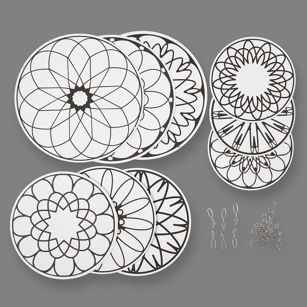 Uitgestanste circkels van dik karton (300 gr) in 3 verschillende maten. Inclusief metalen haken/swivels voor het ophangen Lees meer