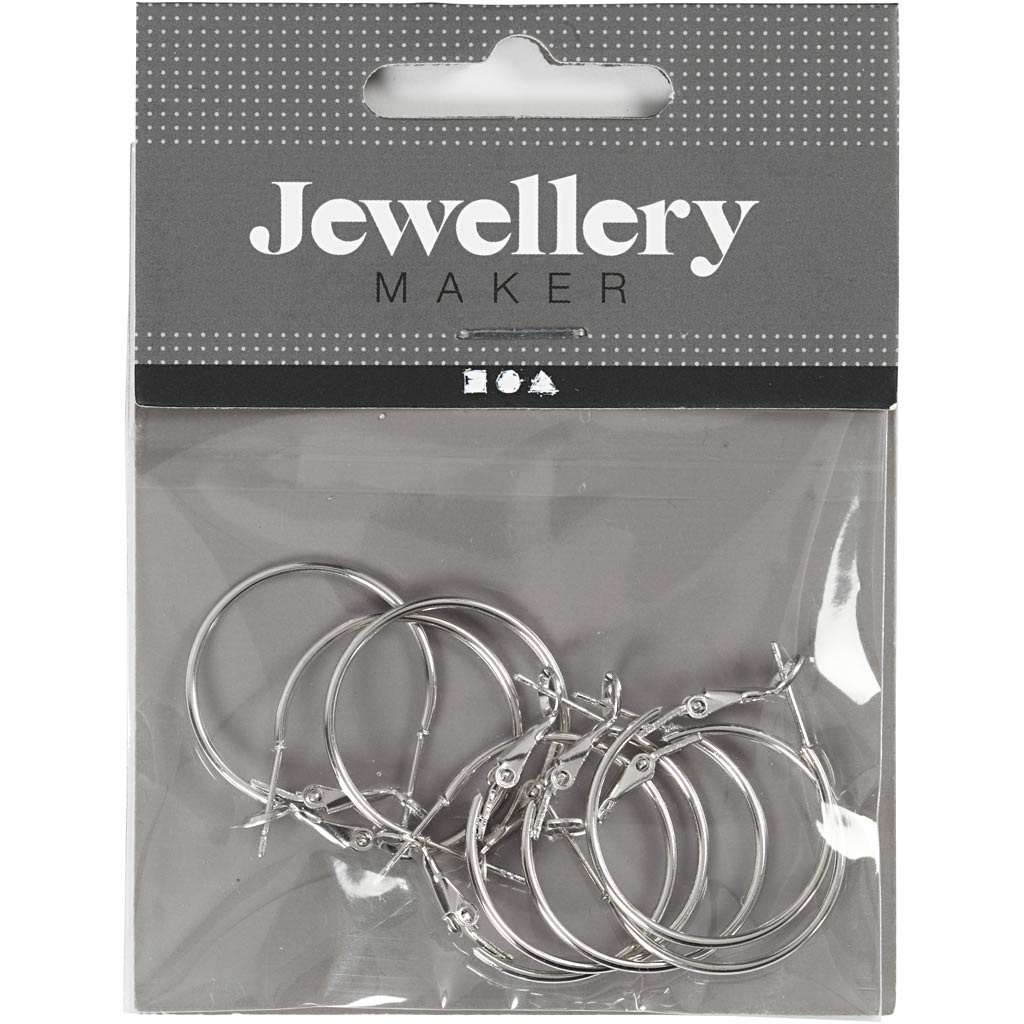 Creativ Company Oorbellen, d 25 mm, verzilverd, 8 stuk/ 1 doos