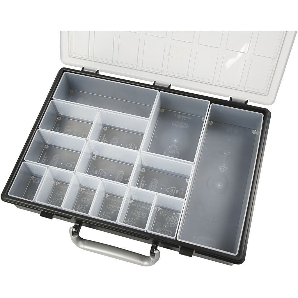 Dankzij het neutrale, functionele ontwerp past deze opslagbox moeiteloos in verschillende omgevingen. Gebruik hem bijvoorbeeld om gereedschap, hobbymaterialen of kantoorbenodigdheden netjes te organiseren. Tip: label de bakjes aan de zijkant om snel de inhoud te kunnen terugvinden en stapel meerdere boxen eenvoudig op elkaar voor meer ruimtewinst.