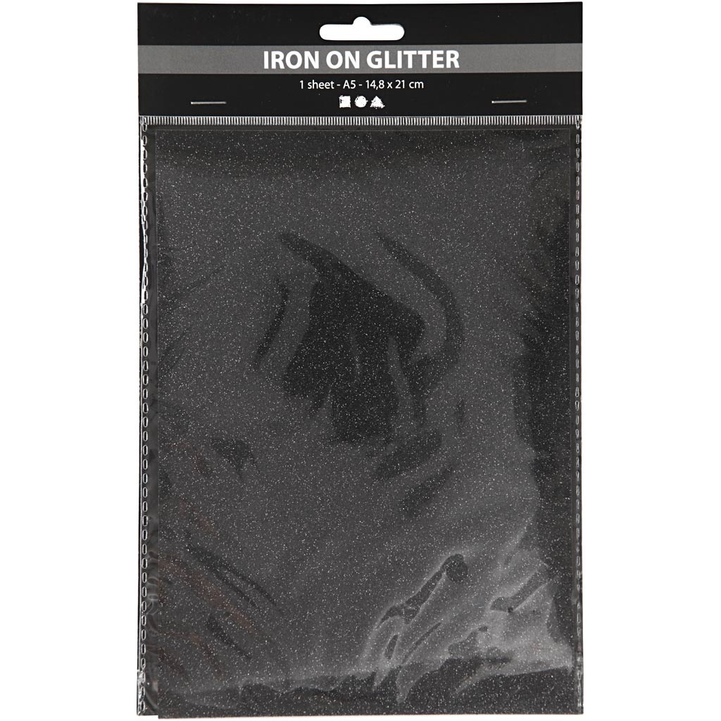 Creativ Company Opstrijkfolie, A5, vel 148x210 mm, glitter, zwart, 1 vel