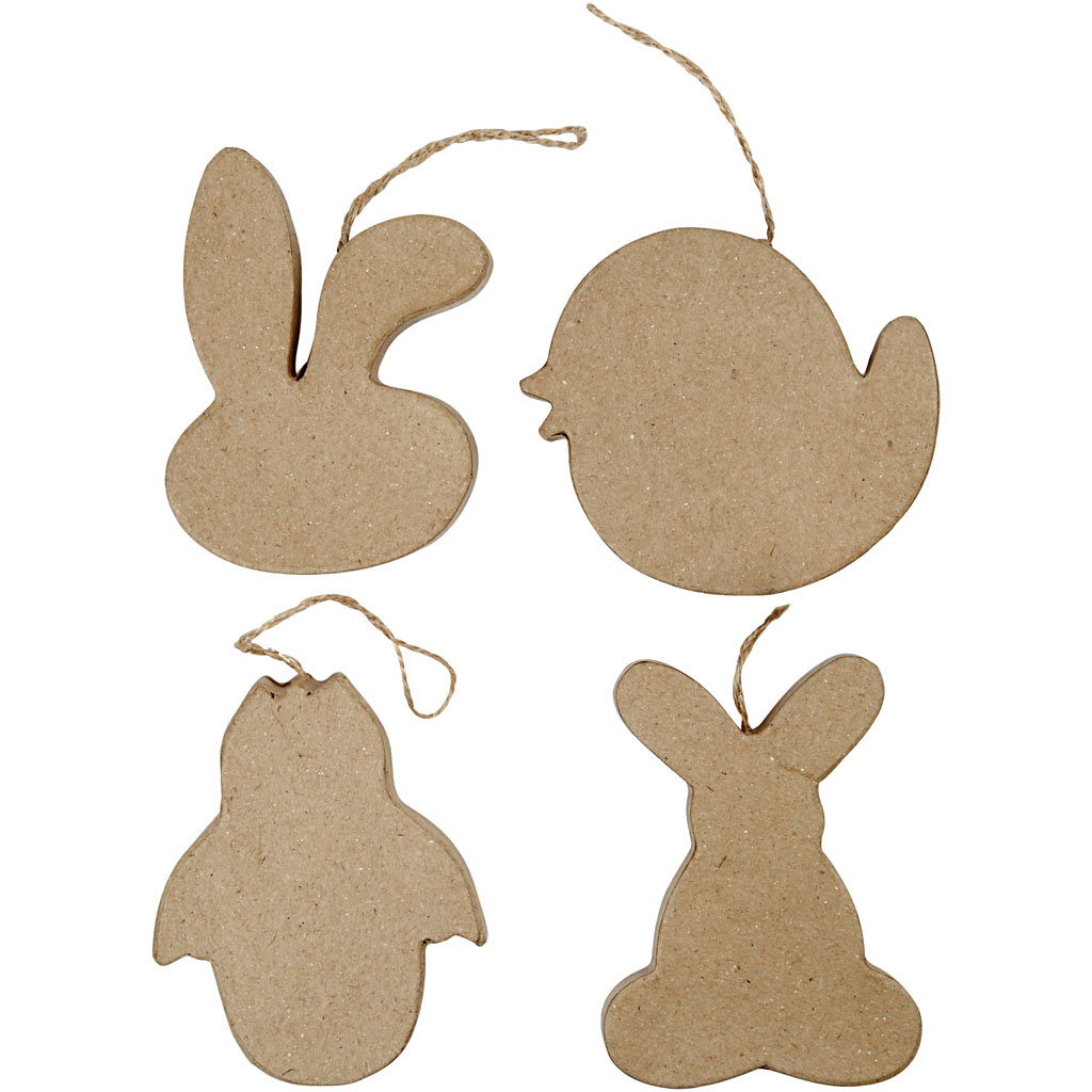 Creativ Company Paas decoraties, konijnenkop, kuiken, kuiken in ei en konijn, H: 10 cm, 4 stuk/ 1 doos