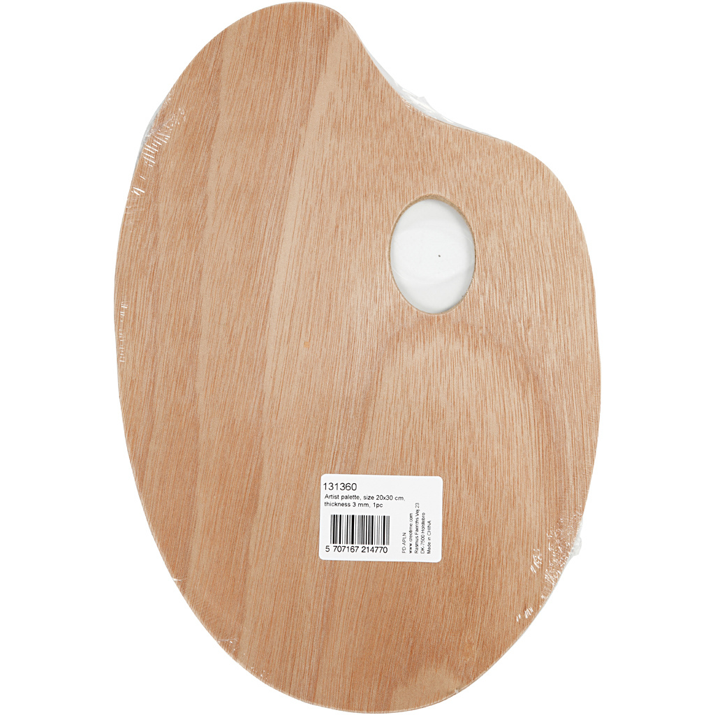 De Palet van Creativ Company is een handig hulpmiddel voor uiteenlopende schilderprojecten. Gemaakt van hout, voelt deze klassieke palet prettig licht aan in de hand, waardoor je gemakkelijk verf kunt mengen en aanbrengen tijdens het schilderen. Met een afmeting van 20 bij 30 centimeter biedt het voldoende ruimte voor verschillende verftinten zonder onhandig groot te zijn.