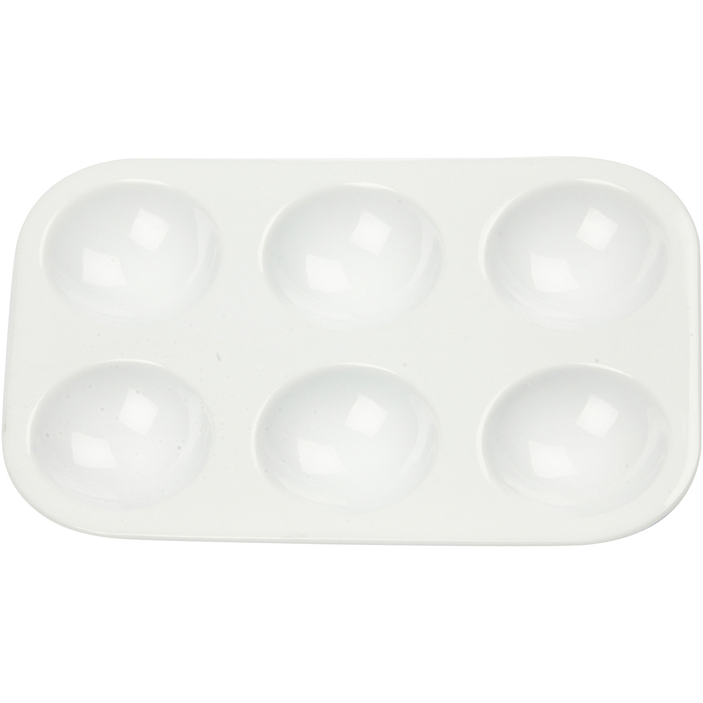 De Creativ Company rechthoekige palet is een praktisch hulpmiddel voor iedere hobbyist en kunstenaar. Dit palet, uitgevoerd in wit kunststof, beschikt over zes aparte vakjes waarmee je gemakkelijk verschillende kleuren verf kunt scheiden tijdens het schilderen. Dankzij de afmeting van 13 bij 8,5 centimeter ligt het prettig in de hand en is het eenvoudig te plaatsen naast je werk.