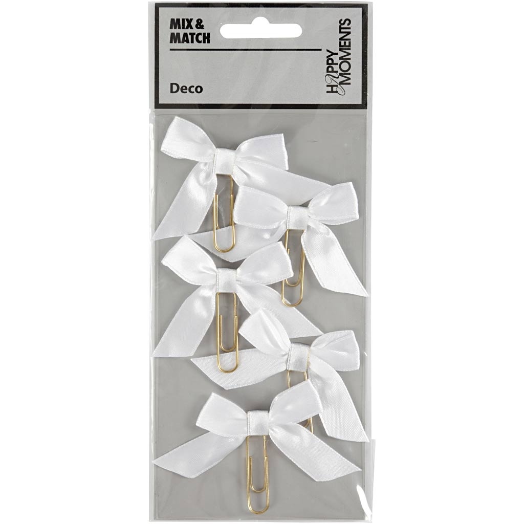 Metalen paperclips met strik van satijnlint. Wordt gebruikt als decoratie en detail op kaarten, uitnodigingen, cadeaus, scrapbooking, planners en nog veel meer