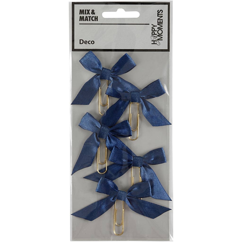 Metalen paperclips met strik van satijnlint. Wordt gebruikt als decoratie en detail op kaarten, uitnodigingen, cadeaus, scrapbooking, planners en nog veel meer Lees meer