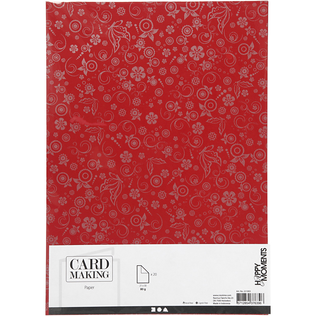 Papier, A4, vel 210x297 mm, 80 gr, rood, 20 vel/ 1 doos