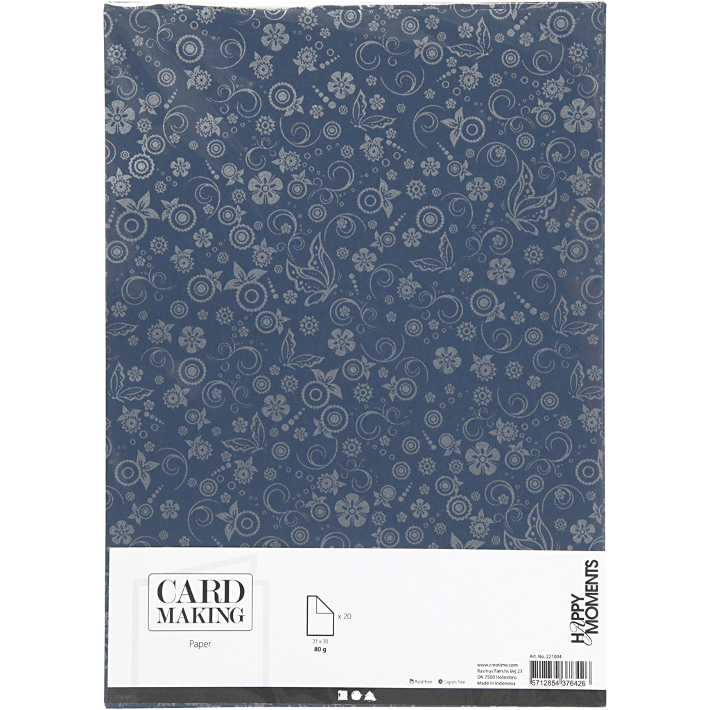 Creativ Company Papier, A4, vel 210x297 mm, 80 gr, blauw, 20 vel/ 1 doos