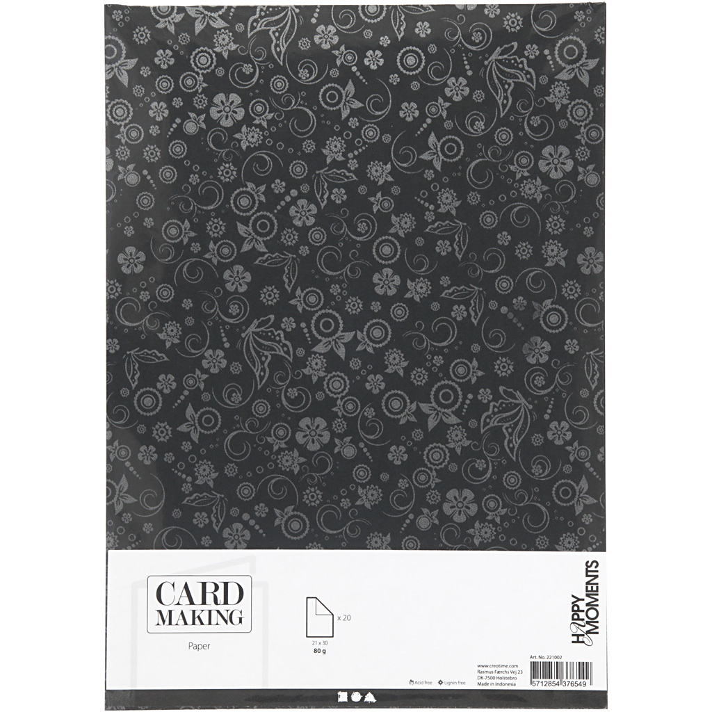 Creativ Company Papier, A4, vel 210x297 mm, 80 gr, zwart, 20 vel/ 1 doos