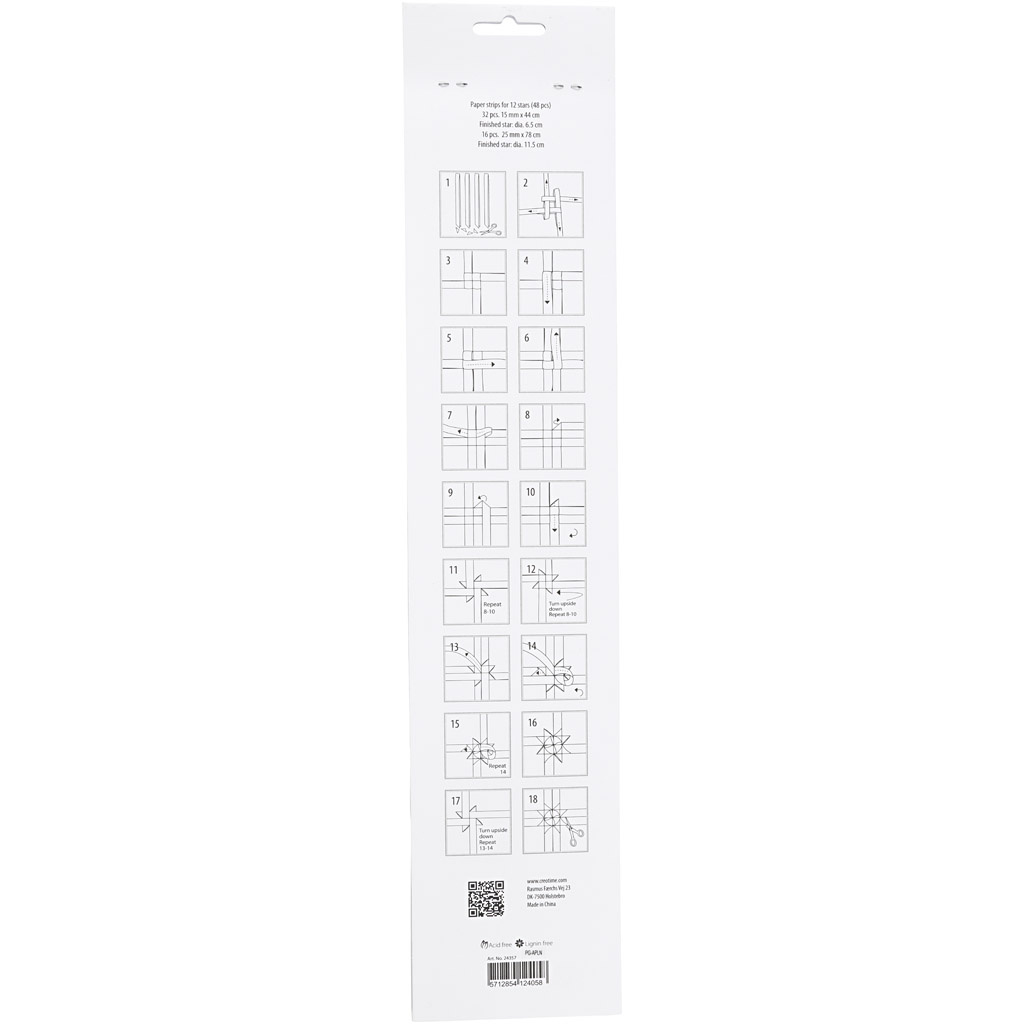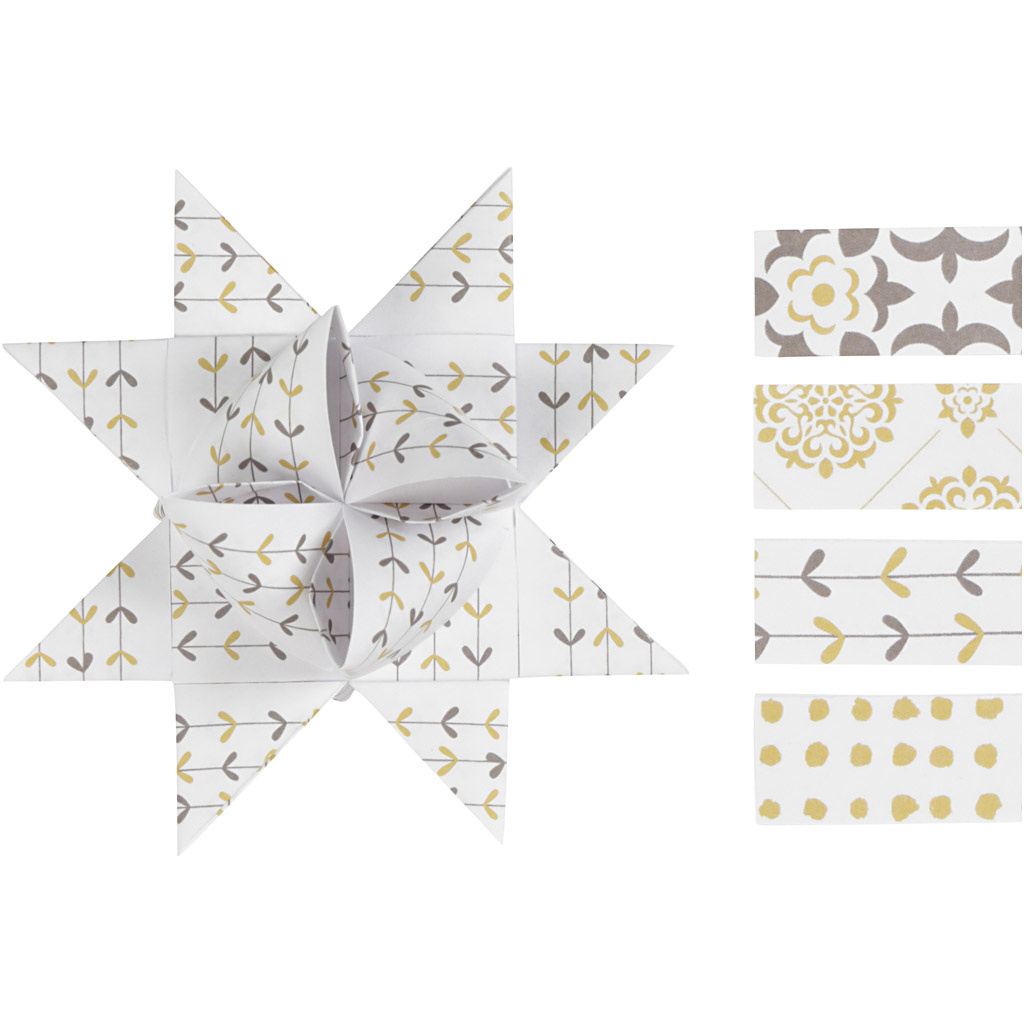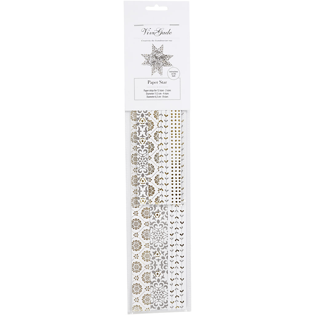 Assortiment 2-dimensionale, multikleurige stroken in een design van Vivi Gade. Omvat 4 designs dubbelzijdig bedrukt en details in metallic folie. Diameter geeft de afmetingen van de ster aan. Inclusief instructie