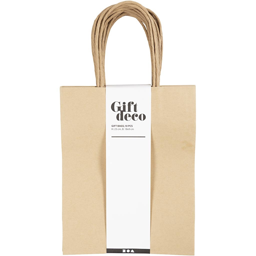 Creativ Company Papieren Zakken, H: 23 cm, B: 18x9 cm, 125 gr, bruin, 10 stuk/ 1 doos