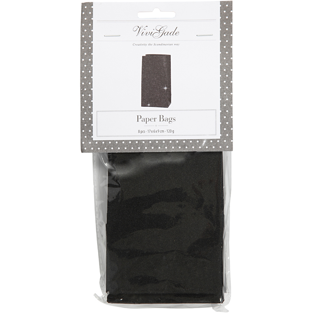 Vivi Gade Papieren Zakken, H: 17 cm, afm 6x9 cm, 170 gr, zwart, 8 stuk/ 1 doos
