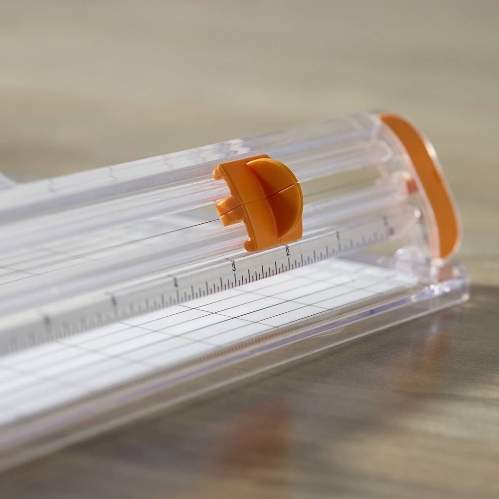 Draagbare papiersnijder van Fiskars met aluminium oppervlak en praktische hulplijnen