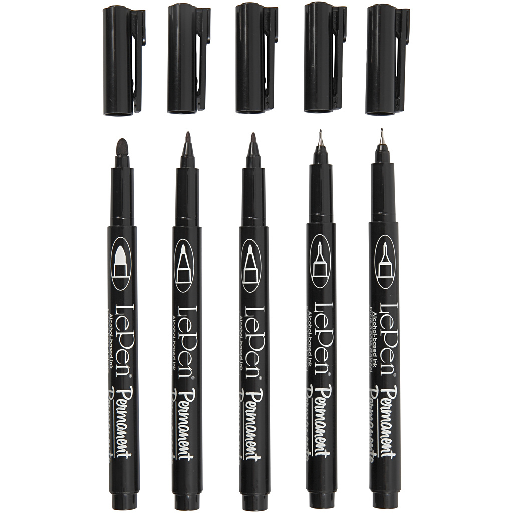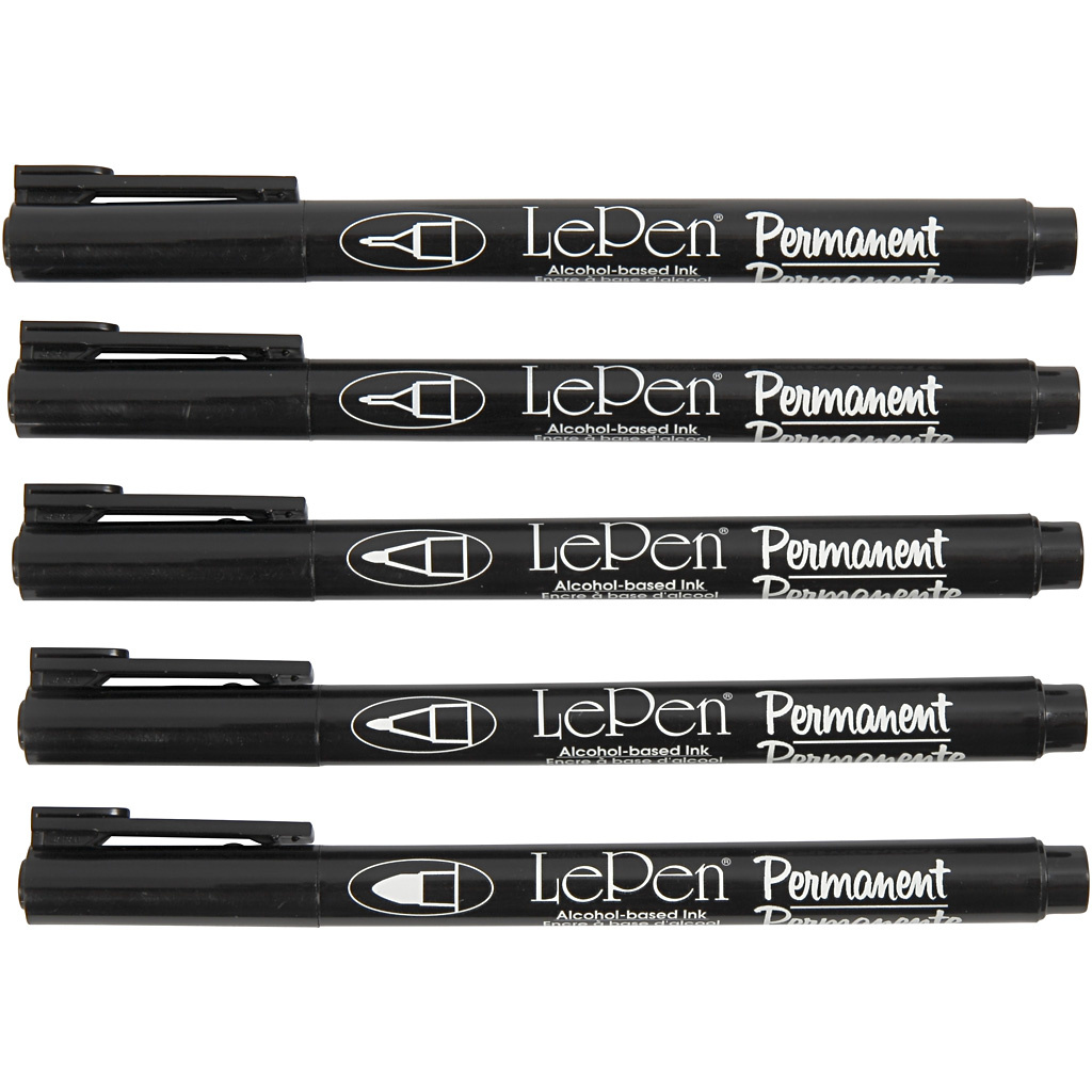 Permanente markers, lijndikte 2x0,6+2x0,8+1,3 mm, zwart, 5 stuk/ 1 doos